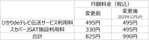 スカパーJSAT株式会社の「テレビ視聴サービス利用料」改定に伴い、2025年12月ご利用分より、「ひかりdeテレビ(NTTサービス名:フレッツ・テレビ)」の月額利用料金を下記の通り改定いたします。